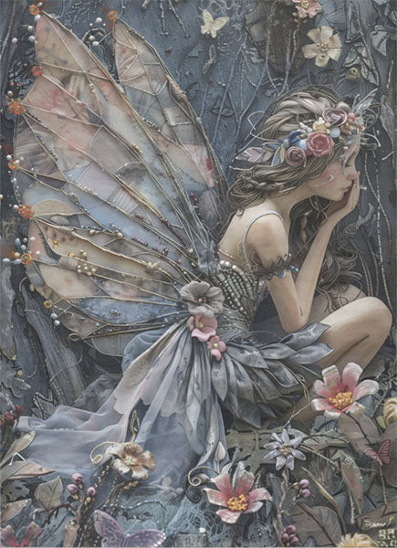 Decoupage Tissue Paper - Twilight Fairy with Flowers (53.34cm x 73.66cm)