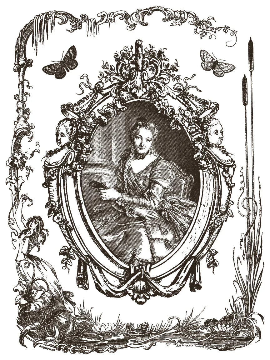 Named for Marie Antoinette’s country retreat at Versailles, Hameau de la Reine – 8-Page 12x16" Paint Inlay is where French farmhouse meets quiet decadence. Inspired by the working ranch she created as an escape from court life, this Paint Inlay blends pastoral imagery with refined, old-world beauty.