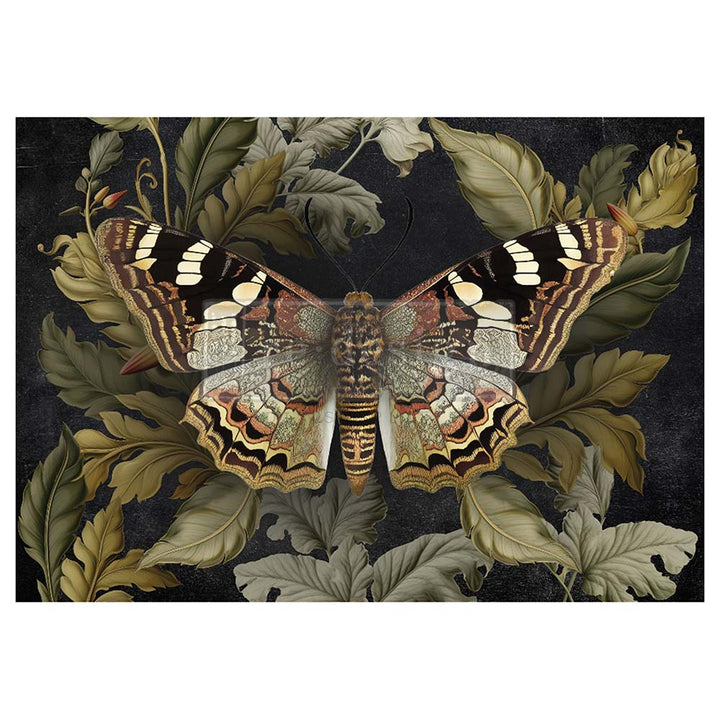 Let your creativity take flight with Butterfly Conservatory Tales, a stunning A1 Decoupage Fiber that captures the elegance of nature. This piece features a magnificent butterfly in intricate detail, surrounded by lush foliage on a dramatic dark backdrop. The vibrant colors and fine patterns evoke a timeless charm, perfect for projects that need a bold, sophisticated touch.