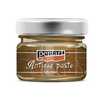 A thick consistency paste with solvent to achieve aged or metallic effects, as well as to emphasise surface cracks produced using PENTART crackle varnishes. Rub a layer of the paste onto the surface to be aged; wipe off any excess material using a dry cloth, or a cloth dipped in turpentine-based solvent.