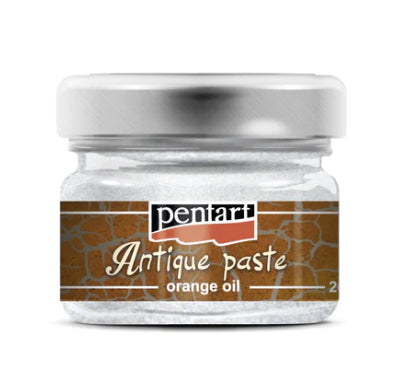 A thick consistency paste with solvent to achieve aged or metallic effects, as well as to emphasise surface cracks produced using PENTART crackle varnishes. Rub a layer of the paste onto the surface to be aged; wipe off any excess material using a dry cloth, or a cloth dipped in turpentine-based solvent.