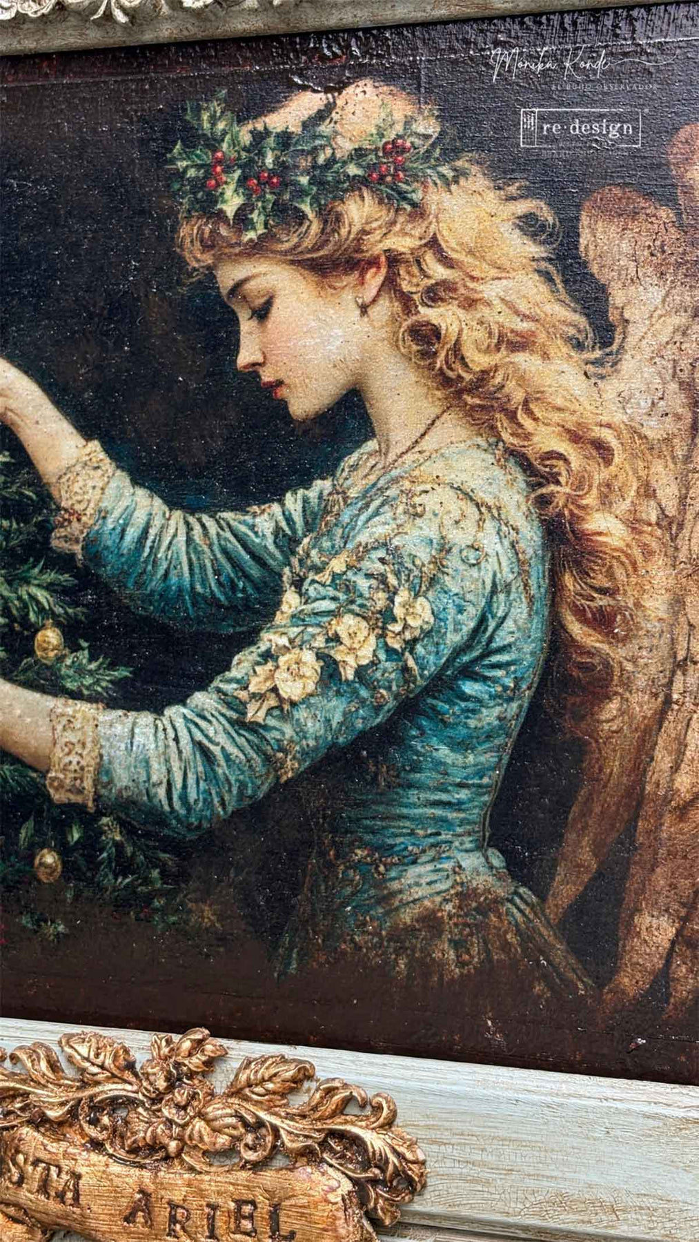 Grace and serenity meet festive charm in Merry & Majestic. Featuring a radiant angel adorning a Christmas tree with golden ornaments and holly accents, this timeless design evokes classic holiday elegance. Perfect for serene seasonal décor, framed art, or keepsake projects, it captures the beauty and peace of a traditional Christmas moment.